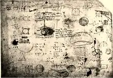 The same page of the Codex contains sketches of eight other projections of the globe (those known in the late fifteenth century) studied by Leonardo, including Ptolemy's conical planisphere projection and Roselli's pseudocylindric projection. [7]