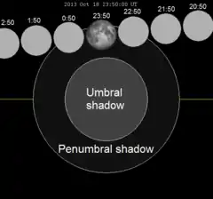 A penumbral lunar eclipse took place on 18–19 October 2013, the last of three lunar eclipses in 2013.