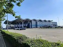 On 8 June 2012, builders started to prepare the land on which the new terminal would be built. The area of the new terminal was to be 26,000 square meters, with the capacity for 1,000 passengers per hour (1.5–2 million passengers per year). It would have 16 check-in desks, and four telescopic gangways, and the number of bus pick-up points would be increased from two to five. The construction of the new terminal was planned to be completed by the end of 2013. However, due to extensive delays, it was opened for arrivals on 15 April 2017.[3] It is to serve both international and domestic flights. The estimated cost of the work was around 45–60 million. Airport Consulting Vienna company has developed a master plan, business plan and evaluation of the technical concept of the airport. The chief designer of the project is the Spanish company Ineco.
