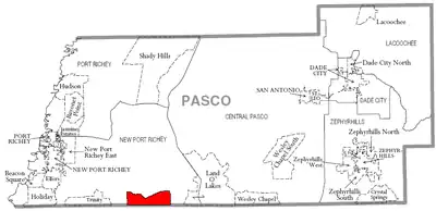 ![]() Location in Pasco County and Hillsbrough county, Florida and the state of Florida | |