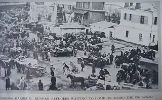 ![]() Refugees of Odesa and White Army troops trying to flee from the Red Army. | |||||||||