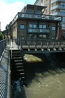 Odessa Wharf is an early 19th-century warehouse located on the south bank of the River Thames at Rotherhithe, London. The warehouse has been converted into apartments and townhouses, some of which are operated as holiday lets by Odessa Club Management[1] with the remainder as private residences. It is situated directly on the Thames Path national trail, north of Greenland Dock, with distinctive timber box "lanterns" on its roof.