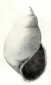 The thin, yellowish white shell has a broadly elongate conic shape. The whorls of the protoconch are small, deeply embedded in the first of the succeeding turns, above which the tilted edge of the last volution only projects. The whorls of the teleoconch are inflated, well rounded, and feebly shouldered at the summit. They are marked by almost vertical, very feeble, incremental lines and exceedingly fine, closely spaced, spiral striations. The suture is moderately constricted. The periphery of the body whorl is very feebly angulated. The base of the shell is short, inflated, well rounded, and with a very narrow umbilical chink. The aperture is large. The posterior angle is acute. The outer lip is thin. The inner lip is strongly curved, somewhat reflected and provided with a strong, oblique fold at its insertion. The parietal wall is glazed with a thin callus.[1]