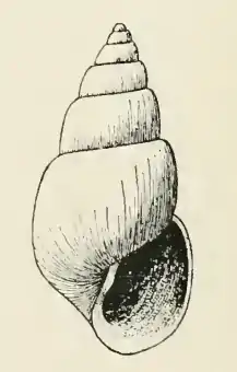 The stout, rough shell has a very broadly conic shape and is narrowly umbilicated. Its length measures 8 mm. The whorls of the protoconch are small, deeply obliquely immersed in the first turn of the teleoconch. The seven whorls of the teleoconch are with quite strong concavely shouldered summits, the rest well rounded (usually showing decided erosion marks which coincide largely with the lines of growth). The parts bearing the original surface show traces of exceedingly fine spiral striations. The periphery and the base of the body whorl are rather inflated, well rounded, the latter narrowly umbilicated, and marked like the spire. The aperture is broadly oval. The posterior angle is obtuse. The outer lip is rather thick. The columella is stout, thick, somewhat flexuose and reflected. It is provided with a strong fold a little anterior to the umbilicus. The parietal wall is covered by a thin callus.[1]