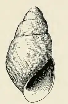The light yellow shell has an elongate-ovate shape and is stout and strong. Its length measures 4.5 mm. (The whorls of the protoconch are decollated.) The 5+1⁄2 whorls of the teleoconch are flattened on their outer three-fourths, rounding suddenly to the closely appressed summit, on the posterior fourth. The entire surface of the shell is marked by lines of growth and numerous equal and equally spaced, well marked spiral striations, of which about 28 occur between the sutures of the penultimate whorl. The sutures are well impressed. The periphery of the body whorl is somewhat angulated. The base of the shell is elongated, rounded, and marked like the spire. The aperture is ovate, and slightly effuse anteriorly. The posterior angle is acute. The outer lip is thin. The columella is short, strongly curved and reflected. It is reinforced for the greater part by the attenuated base and provided with a strong oblique fold at its insertion. The parietal wall is covered by a thin callus.[3]