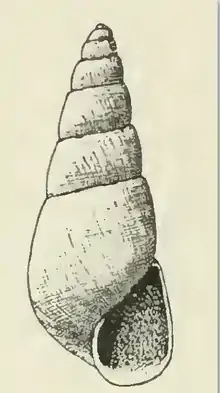 The milk-white shell has an elongate-conic shape. Its length measures 6.5 mm. It is umbilicated. The whorls of the protoconch are small, obliquely immersed in the first of the turns of the teleoconch, above which only the tilted edge of the last volution projects. The seven whorls of the teleoconch moderately rounded, with a narrow tabulatedly shouldered summit. They are marked by equally spaced, rather strong, spiral striations, of which about 32 occur between the summit and the periphery on the penultimate turn. The periphery and the base of the body whorl are inflated, and well rounded. They are marked with spiral sculpture equal in strength and disposition to that on the spire. The sutures are strongly impressed. In addition to the spiral sculpture, the whorls are marked with curved retractive lines of growth. The aperture is pear-shaped. The posterior angle is acute. The outer lip is thin. The inner lip is slender, curved, and somewhat revolute. It is provided with a strong oblique fold a little anterior to its insertion. The parietal wall is glazed with a thick callus.[4]