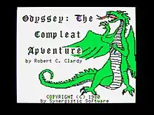 Odyssey: The Compleat Apventure was a video game written by Robert Clardy and released by Synergistic Software in 1980. It was created for the Apple II platform and is considered one of the first microcomputer-based role-playing video games. The title was intentionally misspelled; Apventure is a reference to the Apple computer while "Compleat" is simply an Archaic spelling of the word "complete" meant to match the feel and setting of the game.