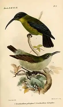 | Toxorhamphus poliopterus (above) Oedistoma iliolophus (below) | |