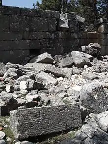 The city walls are well preserved and stand to 10m in places. The Hellenistic city wall is over 65m long and is a superb example of polygonal masonry with small stones on the interior faces while large ashlars were used for the imposing exterior faces.[12]