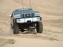 A large sport-utility vehicle such as the Toyota Land Cruiser is used (however, lightweight vehicles often fare better in the extremely soft sand found on sand dunes).[4] Vehicles driven on dunes may be equipped with a roll cage in case of an overturn; Similar to auto-racing, experience and skill is required to maneuver the car and prevent accidents. Before entering the desert in an everyday-use SUV or pickup, it is essential to reduce the tire pressure. This is done to gain more traction by increasing the footprint of the tire and, therefore, reducing the ground pressure of the vehicle on the sand as there is a greater surface area (much like a person wearing snowshoes can walk on a soft surface without sinking, but a person without them cannot). For example, tires with a recommended pressure of 35 psi would be reduced to approximately 12-15 psi.
