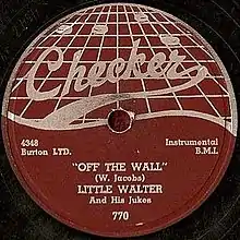 "Off the Wall" is a 1953 blues instrumental and single by Little Walter.[1] The single followed "Tell Me Mama", which had reached #10 on the R&B charts, reaching #8. Following Little Walter's recording Big Walter Horton claimed to be the composer, and he recorded the same harmonica-led tune in Memphis on 28 May 1953 for Sun Records. [2]