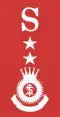 Colonel | 1880 | Active | Reserved for territorial and international leaders | Crest above bar with another bar above the "S" upon a red epaulet |