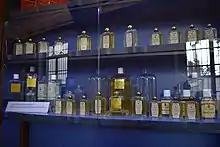 The premises on the Via della Scala in Florence house several historic sales rooms, a tea room, and a museum and library dedicated to the history of the pharmacy. An average of 2,000 visitors per day visit the shop. The main sales room occupies a former chapel, with allegorical frescoes of the four continents painted by Paolino Sarti decorating the vaulted ceilings. The old sacristy is decorated with frescoes by the early-Renaissance artist Mariotto di Nardo, painted in 1380.[3] The Green Room houses displays of wax products, room fragrances, accessories, and men's grooming products. The Old Pharmacy (Antica Spezieria) displays the full range of medicaments and elixirs, foods including biscuits, chocolate, tea, and honey, and the pharmacy's famous liqueurs like Alchermes and Liquore Mediceo.[4] The museum and its exhibits are housed in the Old Laboratories of the Via della Scala premises, containing ceramic and earthenware jars from the 16th and 17th centuries, historic soap machines, and traditional tools. The library is housed in the old sacristy of the church, and includes medieval recipe and reference books.