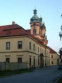 Oflag VIII-F was first established at Wahlstatt in July 1940[1] and housed French and Belgian officers taken prisoner during the Battle of France. It was located in a former Benedictine Abbey dedicated to Saint Hedwig of Silesia, that had been a military school between 1840 and 1920, and used by the Nazis as a "National Political Educational Institution" from 1934.[2]