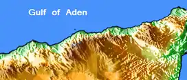 According to the CULTURAL ORIENTATION SOMALI published by the Defense Language Institute in 2020, the Golis Mountains is another name for the Galgala Hills, part of the Karkaar mountain range, and the Ogo Highlands are south of the Karkaar mountain range.[2] However, the areas to which these place names refer vary from literature to literature.