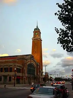 The salient feature of Ohio City's business district is the historic West Side Market, built in 1912. The European-styled market, located at the intersection of Lorain Avenue and West 25th Street, draws an estimated one million visitors annually.[5] Located north of the West Side Market is The Ohio City Fresh Food Collaborative, one of the largest contiguous urban farms in America. The operation includes a farm, retail farm stand and community kitchen on a 6-acre city parcel.[6]