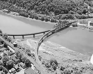 Because the bridge once served as a major junction point for several Pennsylvania Railroad lines, it features a unique approach structure. One section ran from Oil City through Tidioute, Pennsylvania and then on to Warren, Pennsylvania. This line was operated until 1976. It was removed during the early 1980s.
