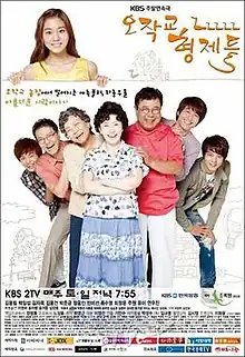 Ojakgyo Family (Korean: 오작교 형제들; RR: Ojakgyo Hyeongjedeul; lit. Ojakgyo Brothers) is a South Korean television series starring Uee, Joo Won, Ryu Soo-young, Choi Jung-yoon, Jung Woong-in, Yeon Woo-jin, Baek Il-seob, and Kim Ja-ok.[1][2][3] The family drama aired on KBS2 from August 6, 2011, to February 19, 2012, on Saturdays and Sundays at 19:55 for 58 episodes.[4][5]