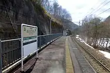 The station has a single side platform connected to the station building, serving traffic in both directions.