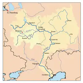 ![]() Map of the Volga watershed with the Oka highlighted | |