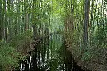 The Okefenokee Swamp Park is headquarters for its founding and administrative body, the Okefenokee Association, Inc., which was granted a sublease to Land Lot 20 in the Dixon Memorial Forest from the U.S. Department of Interior in 1945.[1][2] The private nonprofit organization (501.c.3) has operated as a concession since 1946.[3][4] In 1955, ownership of Georgia Coastal Flatwoods Upland Game Project property, including Waycross State Forest (Dixon Memorial State Forest), Laura S. Walker State Park and the Okefenokee Swamp Park, was transferred to the state of Georgia. The Association's current lease is with the Georgia Department of Natural Resources.[3]