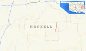 State Highway 26 (abbreviated SH-26 or OK-26) is a state highway in Oklahoma. It runs for a total of 7.97 miles (12.83 km),[1] south-to-north, in eastern Haskell County. SH-26 serves as a link between SH-31 and SH-9. There are no letter-suffixed spur highways branching from SH-26.