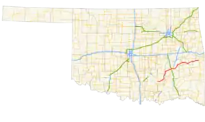 State Highway 31 (abbreviated SH-31) is a state highway in Oklahoma. It runs 132.6 miles[1] in an irregular west-to-east pattern in the southeastern part of the state.
