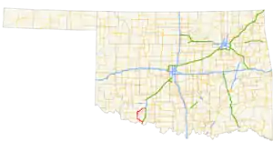 State Highway 36 (abbreviated SH-36 or OK-36) is a state highway in Oklahoma. It runs for 44.4 miles (71.5 km),[1] forming a western loop route from Interstate 44, which it connects to at both ends. It passes through Cotton Co., Tillman Co., and Comanche Co. It currently has no lettered spur routes. State Highway 36 was first added to the highway system around 1926.