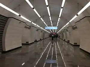 Okruzhnaya (Russian: Окружная) is a station on the Lyublinsko–Dmitrovskaya line of the Moscow Metro between Petrovsko-Razumovskaya and Verkhniye Likhobory. The extension of the Lyublinsko–Dmitrovskaya line between Petrovsko-Razumovskaya and Seligerskaya, including Okruzhnaya opened on 22 March 2018.[1] The station is in Timiryazevsky District of Moscow, at the intersection of Lokomotivny Lane and Tretiy Nizhnelikhoborsky Lane.