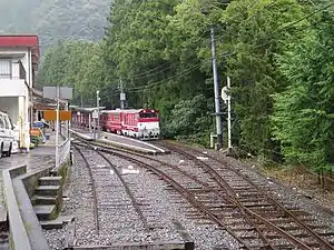 Okuizumi Station (奥泉駅, Okuizumi-eki) is a train station in the town of Kawanehon, Haibara District, Shizuoka Prefecture, Japan, operated by the Ōigawa Railway.