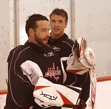 Olaf Kölzig (born 6 April 1970) is a South African-born German former professional ice hockey goaltender and current goaltender coach and player development coach for the Washington Capitals of the National Hockey League (NHL). With the exception of eight games with the Tampa Bay Lightning, he played his entire 14-year NHL career with the Capitals.