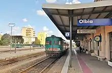 Olbia railway station (Italian: Stazione di Olbia) serves the town and comune of Olbia, in the northeast of the island and region of Sardinia, Italy. Opened in 1881, it forms part of the Cagliari–Golfo Aranci railway, the main railway line in Sardinia.