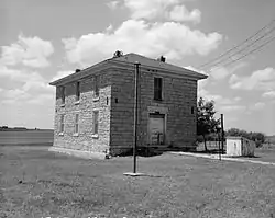 The Old Albany Schoolhouse is a structure in Nemaha County, Kansas that was used as a school from the time of its construction circa 1866–67 to 1963. The school is one of the last remnants of the town of Albany, which declined after a railroad was built closer to the neighboring town of Sabetha. The school is a two-story rough limestone structure in the Plains Vernacular style. The corners are marked with quoins, and the school is covered by a hipped roof. After brief service as a church the school became the a museum in 1965, and now serves as the centerpiece of the Albany Museum complex.[2] Other buildings include a railroad museum, windmill, caboose, antique automobiles, tractors and a 1950s period farmhouse.[3] s[4]