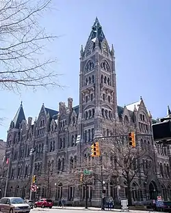 Old City Hall, known formerly as City Hall, is the former city hall of Richmond, Virginia that was designed by Elijah E. Myers. It served as City Hall from its completion in 1894 through the 1970s. The building occupies its own city block in downtown Richmond, bounded by 10th and 11th Streets to the west and east, and Capitol Street and East Broad Street to the south. The building is executed in a meticulous Gothic Revival style, and was designated a National Historic Landmark for its architecture.