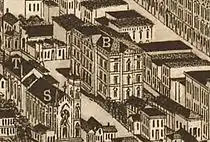 Congress appropriated funding for Knoxville's Customs House in 1856, and reappropriated the funding in 1869.[5] Construction of the original portion of the Customs House (at the corner of Clinch and Market), designed by U.S. government chief architect Alfred B. Mullett (1834–1890), began in 1871 and was completed in 1874.[5] The first floor was used as a post office, while the second and third floors were used for the federal court and office space for federal officials.[6]