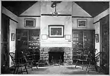 The original building was a stone one-room structure with several large windows, devoid of glass approximately half the size of the current structure. The building was at first heated by an open wood fire, later replaced with a wood-burning stove. Students sat on wooden slab benches arranged in double rows around the edges of the building, and the master sat in the center near the fireplace.