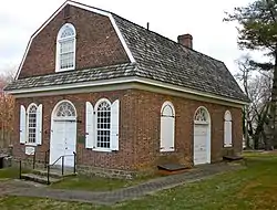 Built in 1740, the one-story brick structure measures 30 feet by 40 feet and has a gambrel roof. Originally located on the east side of Wilmington's Market Street between 9th and 10th Streets, the building was used during the American Revolution by British troops as a prison and hospital during the occupation of Wilmington after the Battle of Brandywine, September 12, 1777. It remained a house of worship until 1840.[2] A cemetery on the site was the final resting place of many noted Wilmingtonians which were reinterred to Wilmington and Brandywine Cemetery.[3]