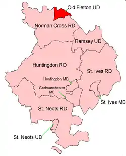 Old Fletton was an urban district in the county of Huntingdonshire and then (from 1965) Huntingdon and Peterborough. The urban district was abolished in 1974 under the Local Government Act 1972, and now forms part of the city of Peterborough in Cambridgeshire.