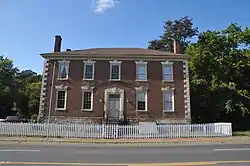 It is dated to about 1765, and is a two-story, five bay, Georgian style brick building. It features stone quoins and a stone doorway. The building has a fully molded wood cornice with modillions, hipped roof, and four interior end chimneys.[3]