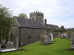 St Laserian's Cathedral was the cathedral of the diocese of Leighlin, now merged with neighbouring dioceses in the Church of Ireland. It is named after Molaise of Leighlin and was built on the site of an old monastic church founded here in 632 AD. It is one of the smallest Irish medieval cathedrals.[2] Nearby are a holy well, which is still venerated, and small granite undecorated wheeled high cross with edge mouldings.[3]