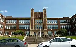 Old Main is a historic academic building on the lower historic campus of Minnesota State University, Mankato in Mankato, Minnesota. Its main section, built in 1924, is dominated by a prominent Jacobethan tower, and is connected to an older 1908 building, now known as the Annex. It was built to replace the original old main (built 1870) also located in lower Mankato that was burned to the ground by a fire in 1922.[2] These structures are the oldest surviving buildings on the original valley campus, which was the first site of the state's second normal school. The state legislature provided funding in 1923 for the development of the site. The 1924 building was designed by Clarence H. Johnston, then the state architect.[3] It currently serves as a nursing home and clinical rotation site for nursing assistant programs in the area.