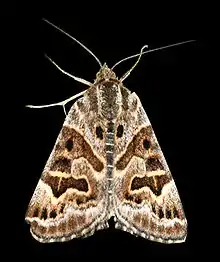 The Mother Shipton moth (Callistege mi) is named after her. Each wing's pattern resembles a hag's head in profile.