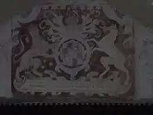 Later on, in order to remind all the villagers who was king, King James I had his royal coat of arms painted in the Church. This coat of arms can still be seen to this day if one stands in the gallery and looks towards the altar. The motto on the arms reads "Exurgat Deus Dissipenter Ininice", this is the opening line of Psalm 68[8] (Let God arise and let His enemies be scattered). Opposite James' arms is a set of Hanoverian arms acquired in 1816.[9]