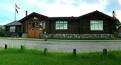 The Old Timers' Cabin first opened in 1959.[5] The structure is a natural log house with a stone chimney, a poplar floor, cedar shingles, and spruce window frames.