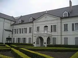 "This is the finest surviving example of French colonial public architecture in the country," states the National Park Service.[2] It is by some accounts the oldest structure in New Orleans, built between 1748 and 1752. It was declared a National Historic Landmark in 1960.[2][4] The convent and its associated school, Ursuline Academy, moved downriver to a site on Dauphine Street in the 9th Ward in 1824, turning over the original convent to the bishop of New Orleans, Louis William Valentine DuBourg. It was referred to as the "Archbishop's Palace" following New Orleans's elevation to an archdiocese.[3] In 1912 the convent moved uptown to State Street.