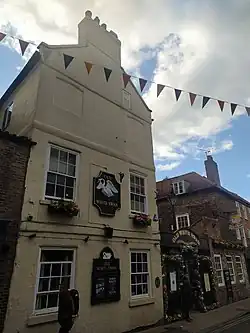 The Old White Swan is a pub in the city centre of York, in England. The core of the building is timber-framed and was constructed in the early-17th century. It lay at the back of a coaching yard on the north-western side of Goodramgate, but with another entrance on Low Petergate. Underneath a glass panel in the floor is part of a Roman column, although this is not its original location.[1]