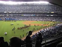 The front office staff vacated the premises on January 23, 2009.[32] Demolition began in March 2009 with the removal of the playing field.[33] On May 13, 2009, the process of removing seats began and was completed on June 8.[34][35] On September 3 and 4, the iconic white facade was dismantled.[36][37]