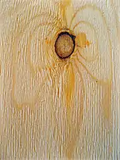 Wood knot in vertical section