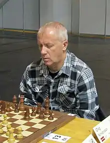 Krivonosov began playing at age 11 and quickly became one of the best players in Latvia. In 1978 he participated in the qualifying tournament for the USSR chess championship.[1] In 1979 Krovonosov participated in the Championship of USSR juniors.[2] In 1986 Krivonosov played for Latvia in the Soviet Team Chess Championships (+3, =4, -0). In 1991 at the last USSR Championship in rapid chess in Minsk with 70 participants, he shared the 4th to 8th place. Oleg Krivonosov regularly participated in Latvian Chess Championship, with as most noteworthy results: 3rd place in 1998 and in 2001.[3] Oleg Krivonosov played for Latvia in Chess Olympiads:[4]