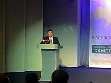 Oleksandr Ivanovych Danchenko (Ukrainian: Олександр Іванович Данченко, born November 14, 1974)[1] is a Ukrainian politician. He was elected to the Verkhovna Rada in the October 2014 Ukrainian parliamentary election, appearing 10th on the party list of Self Reliance.[1] Formerly the CEO of a telecom provider Data Group, currently he is the head of the Parliamentary Committee for Informatization and Communications.[2][3] He failed to win reelection in the 2019 Ukrainian parliamentary election.[4]